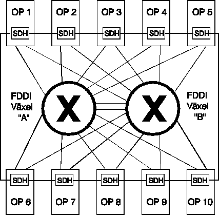 Via FDDI-förbindelsen kan man tekniskt från godtycklig router etablera förbindelse till annan godtycklig router.