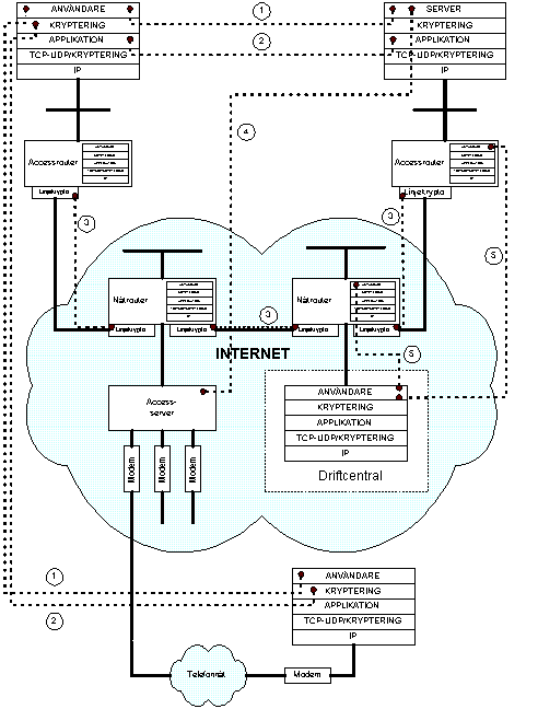 I skissen anges kryptering på fem nivåer (siffrorna har sin motsvarighet på bilden):