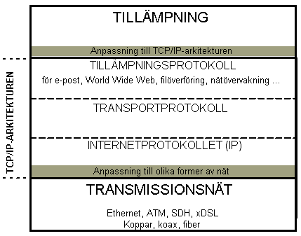 TCP/IP-arkitekturens princip anges förenklat i figur 7-3.